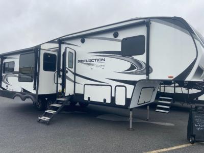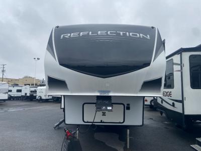 With any Reflection fifth wheel by Grand Design, you will have a solar panel for off-grid camping and a 60 amp charge controller and inverter prep, a Universal All-In-One docking station, unobstructed pass-through storage, and Goodyear Endurance tires. Each is constructed of gel coat exterior sidewalls, residential 5" truss rafters, walk-on roof decking, a fiberglass and radiant foil roof and front cap insulation plus laminated aluminum framed side walls, roof and end walls in slide rooms. Head inside to enjoy residential hardwood cabinet doors, premium Congoleum flooring, a spacious shower with a glass door, and many more comforts!