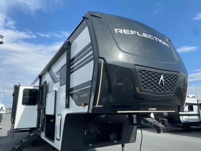 With any Reflection fifth wheel by Grand Design, you will have a solar panel for off-grid camping and a 60 amp charge controller and inverter prep, a Universal All-In-One docking station, unobstructed pass-through storage, and Goodyear Endurance tires. Each is constructed of gel coat exterior sidewalls, residential 5" truss rafters, walk-on roof decking, a fiberglass and radiant foil roof and front cap insulation plus laminated aluminum framed side walls, roof and end walls in slide rooms. Head inside to enjoy residential hardwood cabinet doors, premium Congoleum flooring, a spacious shower with a glass door, and many more comforts!