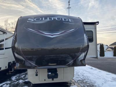 Choose a Solitude fifth wheel by Grand Design today, and experience full-time camping or extended-stay vacations with residential features, taller ceilings, deeper cabinets, and larger scenic windows!