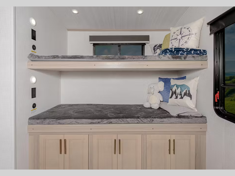 - Queen size bed w/ built-in pet kennel storage (select models)