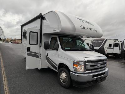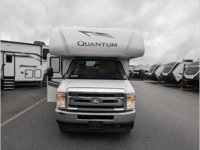 With any Quantum ESpec Essential Class C gas motorhome by Thor Motor Coach, you will find convenient amenities, a modern interior, and a reliable Ford E-Series chassis, with an optional Chevy chassis on select models to power your adventures. There is welded tubular aluminum roof and sidewall cage construction, a one-piece fiberglass front cap, and premium one-piece Crossflex exterior roofing for added strength. Residential vinyl flooring will be easy to keep clean, and you'll love the sleek look of the Harbor Collection, three-toned cabinets. These motorhomes also include a 50 state 4.0 kW dual gas/LP generator and a 30-amp shoreline power cord to keep you going, along with a tankless water heater and 13,500 roof front A/C to ensure your comfort!